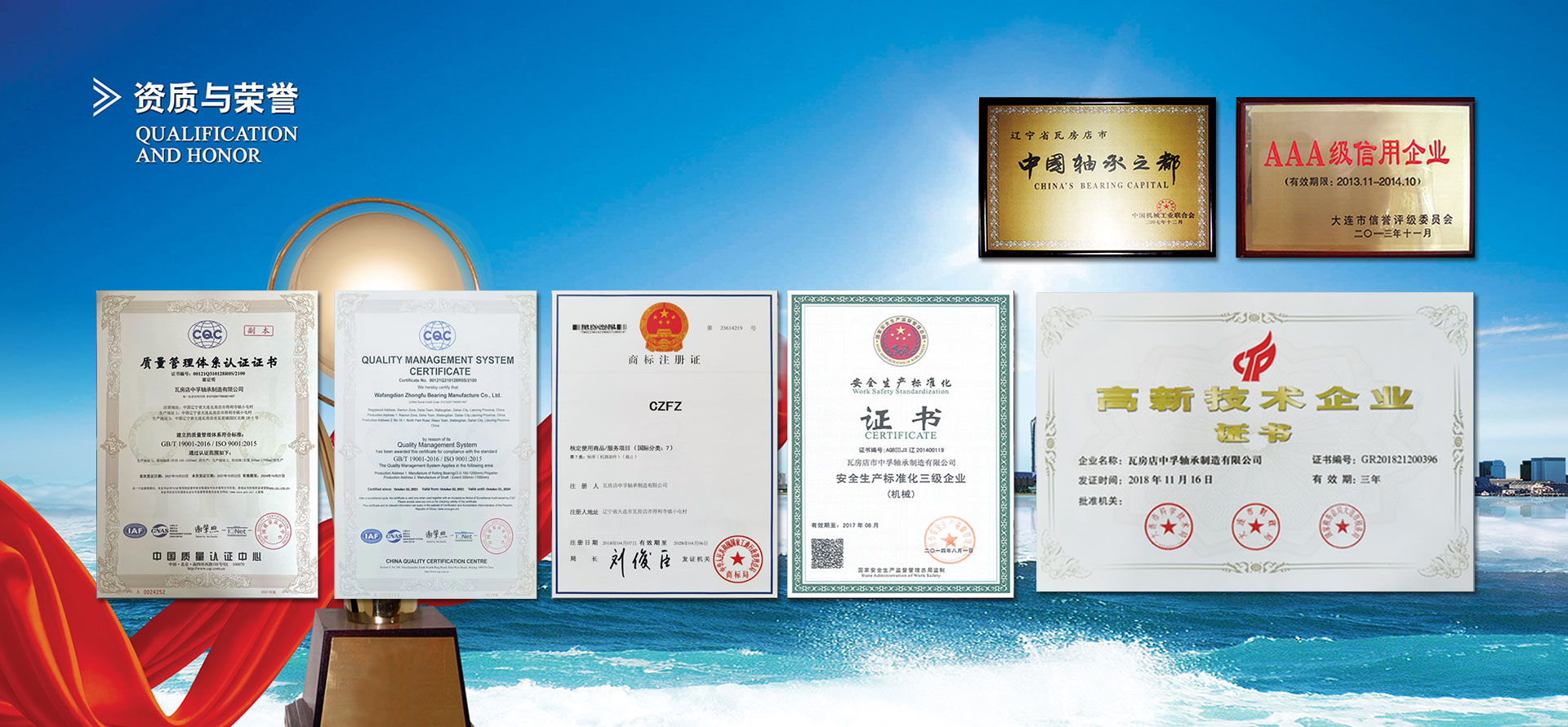 瓦房店中孚軸承制造有限公司專業生產礦用汽車軸承和配件,擁有獨立礦用汽車軸承設計和產品研制部門,具備開發礦用汽車軸承的能力,保證軸承的使用壽命和高穩定性,并建立了完整的質量體系,已通過ISO9001:2015質量管理體系認證。